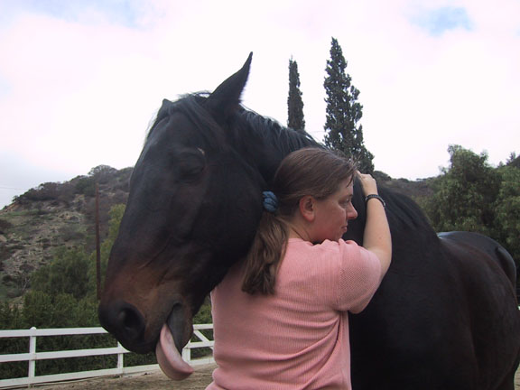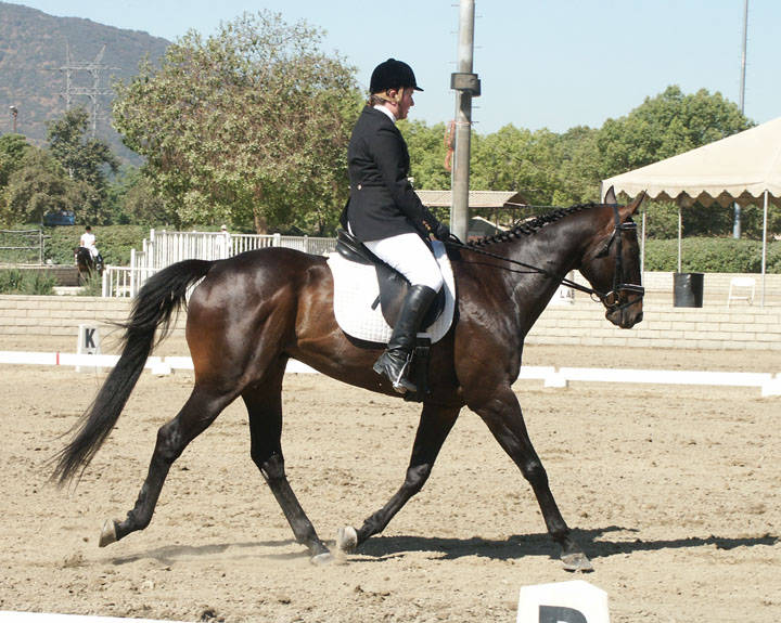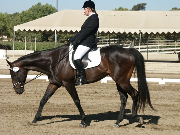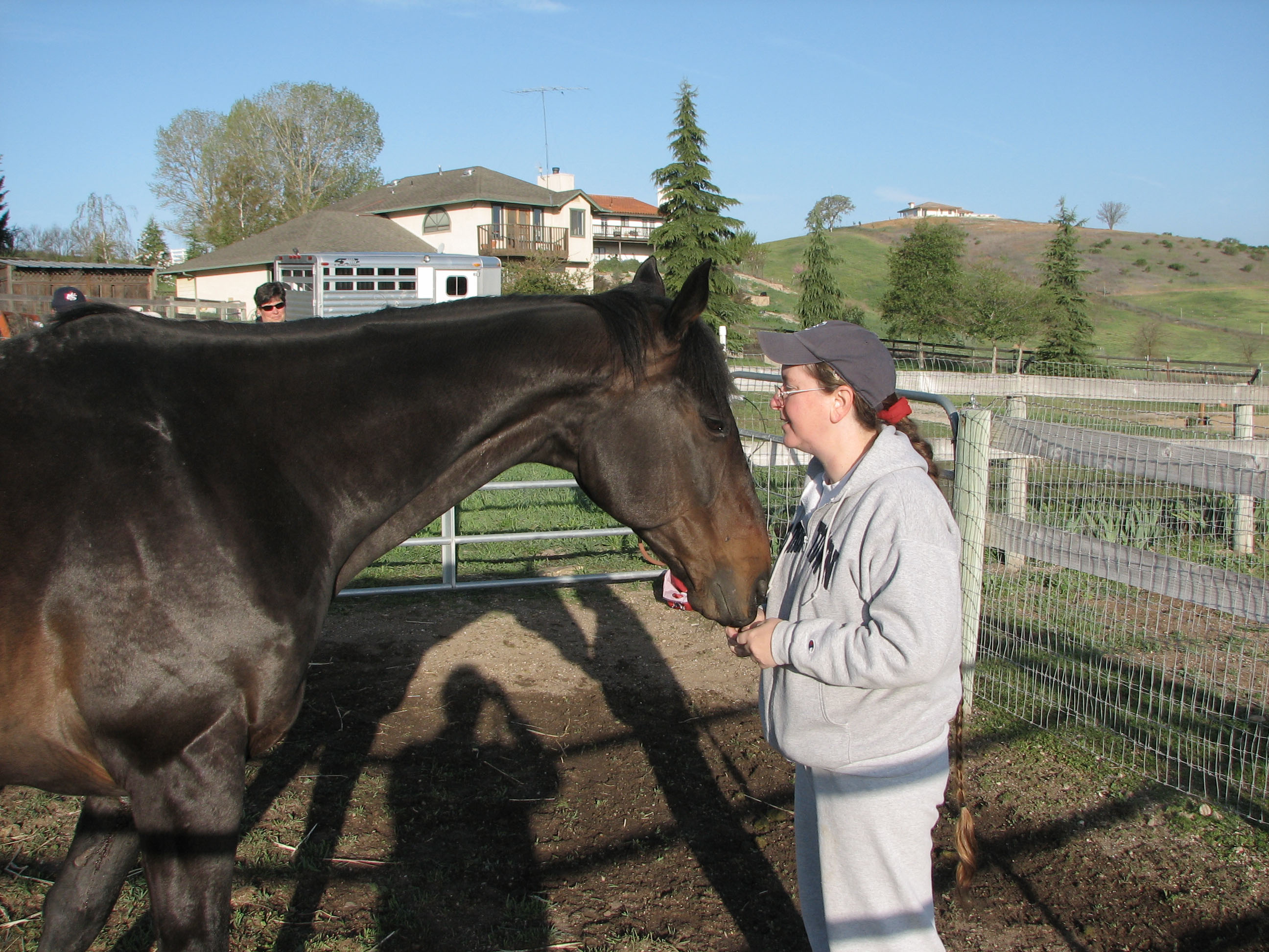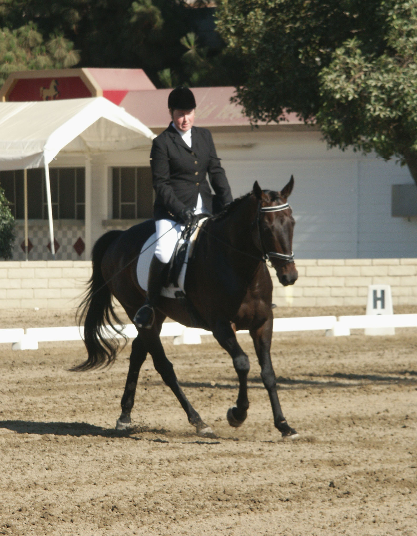 He was adopted by a trainer from the Pasadena area who saw beyond the racehorse to a horse with a very steady disposition and lovely gaits. She found him to be an uncomplicated, fast learner and gave him a very solid basic dressage education; then posted his availability for sale. Right about this time I was at a point I my life where I needed a long term dance partner; I had cut my teeth on horse ownership with an elderly-yet-fiesty Thoroughbred named Ed, whose arthritis and age were going to take him out of competition. I needed a new partner; I found Pirate. I gained more than I knew; in Pirate, I found a friend, soulmate, teacher, student, lifepartner, child and beloved all rolled into one carrot-loving package.