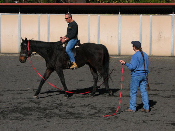 In February of 2006, I moved Pirate to a barn just a few blocks from where I lived, and we entered into an even closer relationship. Being the sole person responsible for his training and welfare was a huge, scary responsibility, but the rewards were immeasurable. My ex-racehorse now turned his talents to being a trail horse, and astonished me daily with his unflappable demeanor. Gone were the days of worrying and pacing and fretting; replaced with a calm, sturdy and solid "let's do anything" companion. These were the happiest months I can ever recall.