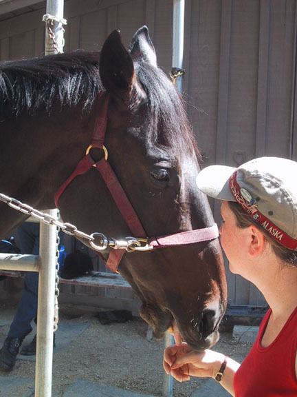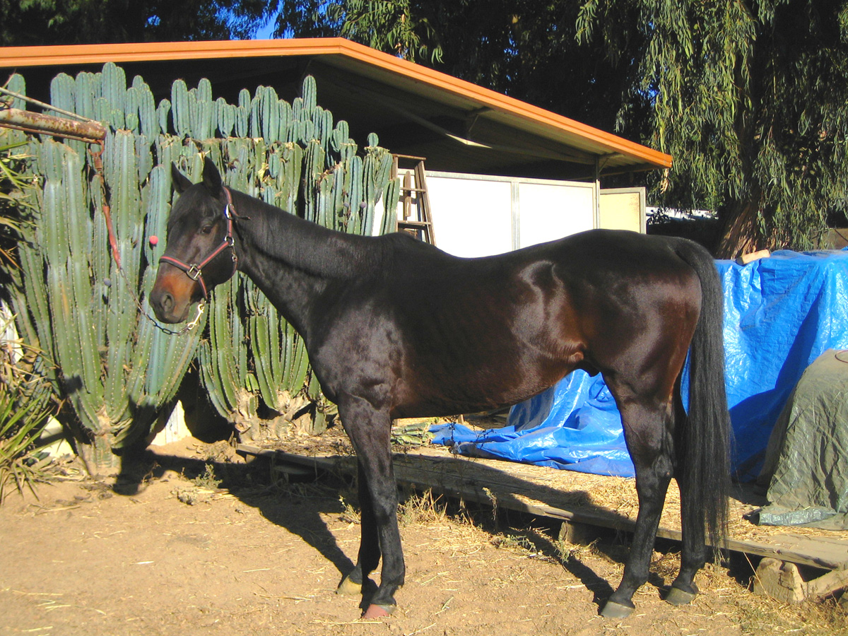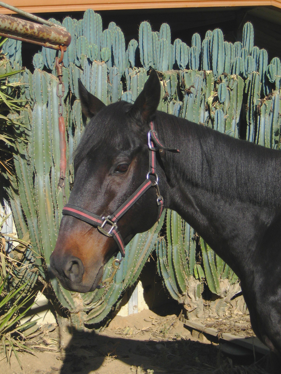 I’m a girl that grew up dreaming of horses...sleek, dark, elegant, handsome horses; I’m someone who managed to make that dream come true. Since most of my equine exposure as a kid was at Santa Anita racetrack, it’s no mystery that when I pictured My Horse, it was a racehorse. I love all horses, and appreciate all the merits of different breeds, but my heart will always and ever be in thrall to the fleet footed Thoroughbred. In 2002 my heart found its dream come true in the soul of one sweet faced gelding, who became my Pirate King.
