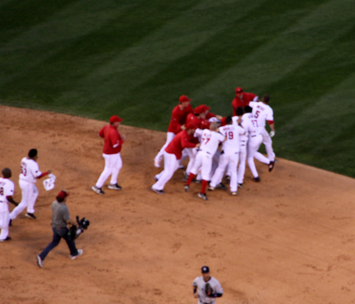 Somewhere in there, Jeff Mathis is trying not to get crushed...cause we got some more baseball to play!