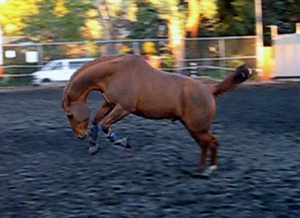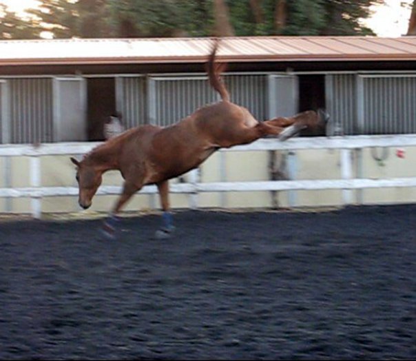 In January 2009 we had one of those typical California winter storms that dumped a ton of rain for about a week. To save the footing our arena was closed for almost two weeks. Needless to say, when it finally reopened, SOMEBODY needed a turnout. Most of these are still captures from this video.