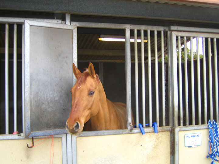 I purchased Punkin exactly one week after our test ride - when you find Mr. Right, you know it. I sweated bullets to schedule a quick pre-purchase exam, which he passed with flying colors. I purchased him just after Valentine's Day in 2008. Dave was awesome about the whole thing - even he could tell that this was the horse for me (and one much less likely to result in continued hospital visits!). I boarded Punkin at Gina's for a month after purchase and drove out a few days a week for lessons - which, after 2+ years out of the saddle, I needed badly! In early April Darian - bless her heart - drove all the way down from Templeton in the trailer to pick him up and transport him the short drive to his new home at Altadena Stables.
